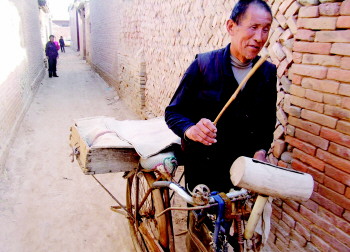 耿家厚走街串巷,叫卖着自己制作的卤水豆腐。