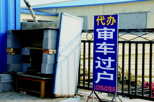 牌子上写着代审过户,却没有固定办公场所。