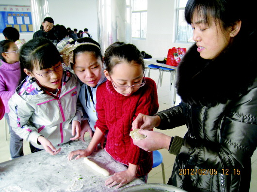 韩老师教学生们包饺子。