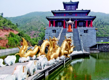 在龙泉观的遗址上,已投资数千万元,建起了规模宏大的“合龙寺”建筑群。天王殿、大雄宝殿、观音阁、藏经楼、药师殿、莲花池等建筑群落金碧辉煌,气势磅礴,殿内佛像更是威风凛凛,令人崇拜。虽然合龙寺为一座新建寺院,但它所在的山峪里,传说中的龙泉观却更加让人感到好奇。