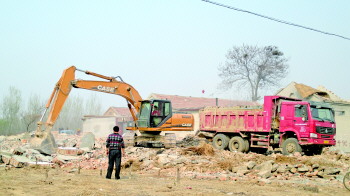 24日下午,在挖掘机的轰鸣声中,肖家村的大部分房子已经夷为平地。自3月5日黄河古镇项目一期搬迁工作全面启动以来,68户的肖家村已有60余户签订补偿协议,40户的胡同居也有15户签订补偿协议,整个搬迁工作涉及250余户居民,预计5月初完成。