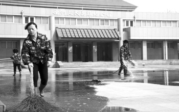 27日,为了迎接清明节,德州市烈士陵园的全体工作人员提前对陵园进行大扫除,为市民创造良好的祭扫环境。 本报记者 王小会 摄
