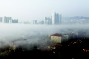 ▲27日,一股平流雾笼罩岛城,站在高