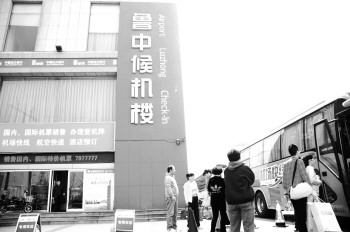 旅客正在乘坐机场大巴。 本报记者 姜文洁 摄
