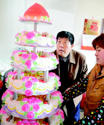 六层的蛋糕祝福老人“高寿”。