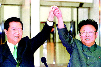 2000年6月14日,金正日在平壤会晤来访的金大中。 (资料片)