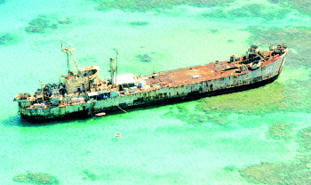 菲方非法坐滩仁爱礁的军舰。