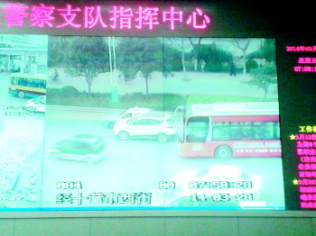 事故车辆霸占了两条机动车道,其中出租车所占车道还是公交专用车道。监控显示,事故发生后,后方行驶的公交车受阻,不得不跨越两个车道绕行。