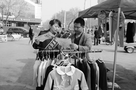 滨城区公路局的工作人员为市民讲解路政管理条例。 本报记者 王茜茜 摄