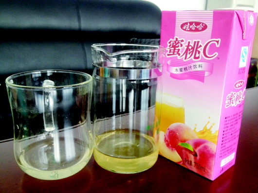 号称蜜桃果汁 倒出如同清水