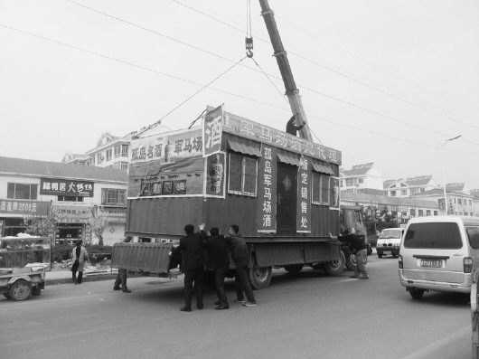 在北杨市场有部分业主为了方便个人在人行道上搭建了铁皮屋。28日上午,在北杨居委会的配合下,滨城区城管执法分局执法人员最终与3家业主达成一致共识,3个铁皮屋被移至规范地点。