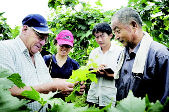 2008年7月29日,诺博在汉诺庄园指导果农科学管理葡萄