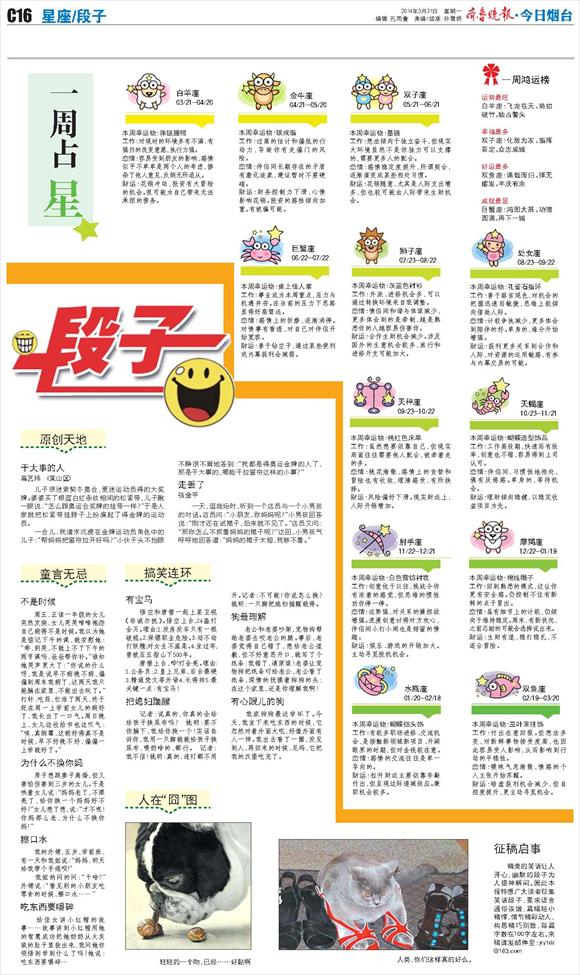 第J16版:今日烟台·星座段子