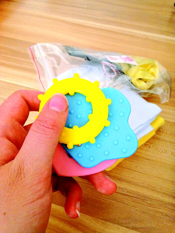 一些DIY玩具材料包中的牙咬胶,并没有任何材质说明及生产厂名、厂址。 本报记者 穆静 摄