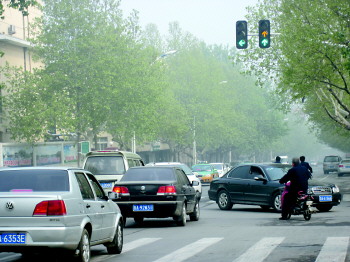 车站街与山泉路的交叉路口的黄灯一直亮着。 本报记者 支倩倩 摄