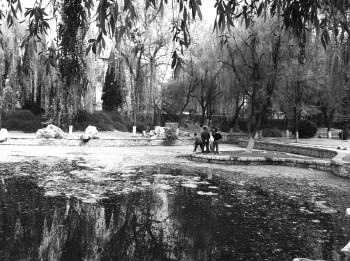 ◥ 园内湖水呈现出暗绿色。