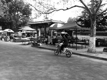 ▲ 众多小摊堵住自怡园的门口。