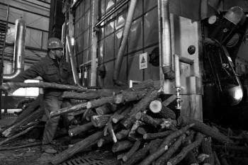 淄博环保供热公司存储木柴供烘炉使用。 本报记者 王鑫 摄