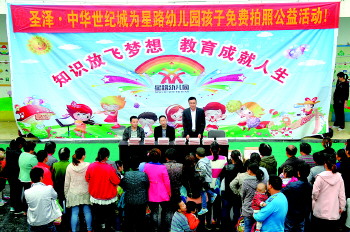 此次公益活动由圣泽·中华世纪城赞助,作为一个有社会责任心的企业,一直从事于公益事业,不仅捐建“梦想书屋”,救助贫困学子,还曾为菏泽开发区佃户屯敬老院的百名老人免费拍照。