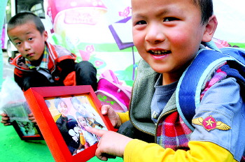 孩子们拿到照片要求记者拍照留念。
