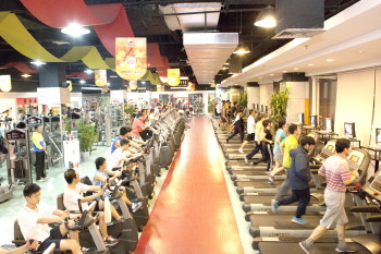一健身房内挤满了健身的人群。 本报记者 许妍 摄