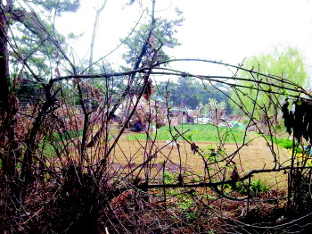柳树往里是由松树组成的防护林。记者看到,这些防护林里面有大片树木都枯黄了,树木下堆满了生活垃圾,还有的树被砍伐,只剩下树墩。防护林中的部分空地被人圈起来养鸡。还有一大片地方被盖了房子围上院子,在里面种起了菜,原来的树木也不知道哪儿去了。