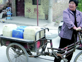 采访中记者了解到,彭家庄村有一千多口人,青壮年大多外出打工,留下的大部分是老人和孩子。提到没水喝,大家都苦不堪言。“去邻村借水喝的日子已经半个月了,再这样下去简直没法生活了。”正要去邻村讨水的一村民表示,为了喝上水,每天一早就骑着三轮车到几公里外的村子去讨水。他说,加上排队的时间,来回一趟要花一个小时。