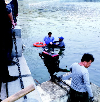 这时,正在附近清理水草的河道工作人员许守旺和王坚强听到求救声,立刻驾驶小船朝事发地点驶来。“刚开始不知道什么事,过了大桥才看到有人跳河了。”王坚强赶紧加油门朝女孩开过去,当小船靠近女孩后,63岁的许守旺直接跳入水中,将女孩拖上小船。“女孩自始至终都没有说一句话,一直闭着眼睛。”许守旺说,女孩被拖上船后便瘫坐在了椅子上,身上并没有酒味,应该不是酒后失足掉入。