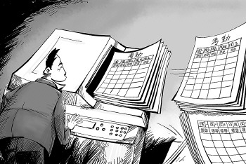 5月4日,西安市纪委对各单位各部门人员上岗情况进行了抽查,发现蓝田县统计局从3月份启用指纹机至今,管理人员没有从指纹机上提取过考勤数据;而在司法局,两名主要领导的签字是直接复印在考勤表上的。(5月6日《三秦都市报》) 漫画/勾犇