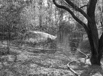 6日中午1点左右,迎宾路南侧一小公园内发生火灾。火势沿着公园内的小山坡蔓延,烧毁了不少草皮和灌木,少数几棵大树也难逃一劫。消防人员将火扑灭后,仍在不断对过火后的地面撒水和清理被烧毁的树枝,以免死灰复燃。目前起火原因正在调查中。