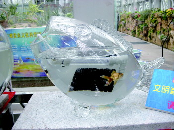 作品描述:在一个大鱼形状的玻璃鱼缸里养金鱼,有一种“大鱼吃小鱼”的感觉呢,你瞅瞅?