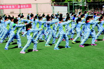 ◤日前,武术运动在福林小学全面展开。学校依据学生身心发展特点,让不同阶段学生习练不同的武术套路,以强健体魄。