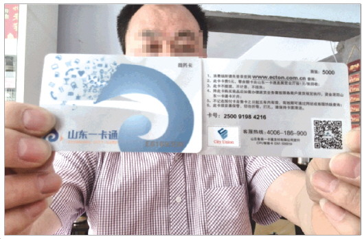 莱芜一市民购买两张5000元的山东一卡通,消费时发现被骗