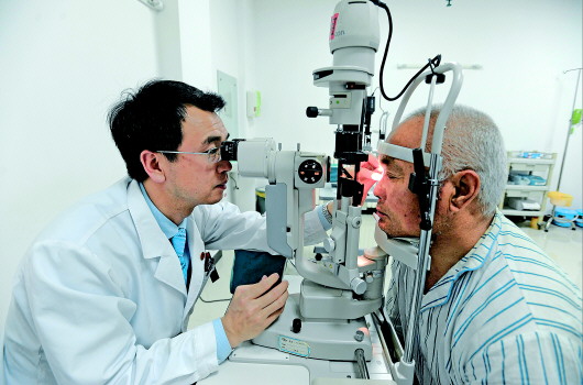 婴幼儿角膜移植最好给年龄相仿的患者,但成人角膜常年处于供不应求的状态。图为11日,一名做完角膜移植手术的患者在诊室复查。 本报记者 张晓鹏 摄