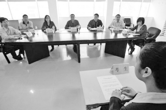 深圳聘任制公务员面试现场,考生面对考官压力重重。(资料片)