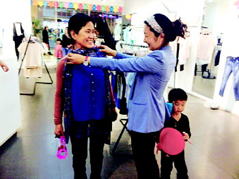 母亲节,市民周女士正帮妈妈挑衣服。本报见习记者 康宇 摄
