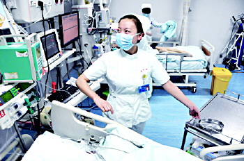 重症监护室内繁忙的身影。