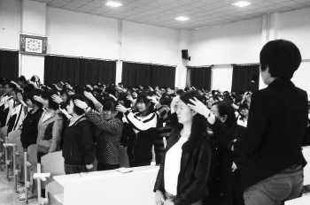 讲座开始,在心理咨询师戚月燕和张丽萍的示范下,全体参会学生起立,互相为对方按摩头部、肩膀和背部,事先进行身体上的放松。戚月燕说,适度紧张是考前最佳状态,达到理想状态要学会适度放松,如降低预期值,让理想与现实更加贴近,不给自己太大的压力。高三11班的班主任铁勇说,他一直想告诫同学们,在临近高考的情况下,降低理想预期不是否定自己,而是让自己更能以平静的心态面对高考。