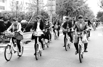 莒县此次共有1500辆公用自行车投入使用。
