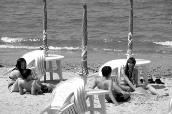 | 娇艳的阳光赶走了连日阴雨,不少市民和游客清凉着装,跑到海边晒日光浴。本报见习记者 吕奇 摄影 |