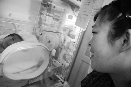 在新生儿重症监护室里,吕娜第一次见到孩子。本报记者 李泊静 摄