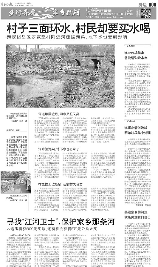 位于岱岳区夏张镇的罗家堂村是个三面环水的小村子,按理说吃水应该不成问题,但是目前许多村民却在买水喝。罗家堂村党支部书记杜宪明介绍,目前全村有265户945位村民,村里都是沙土地,原先从地上挖一个坑,就有清水冒出来,村民都自打井吃水。从1998年开始,地下水受污染,自打井里的水不再能吃,村里就在村南打大口井,给村民供水。可是慢慢地大口井里的水也逐渐变少。