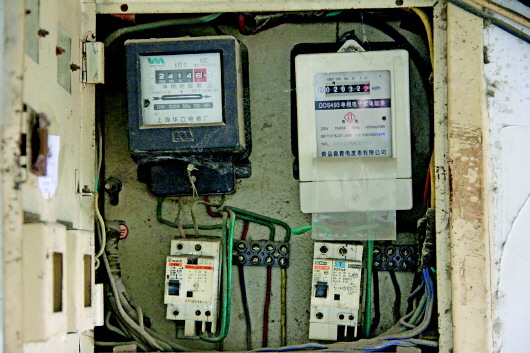 ◥八号院内的电表,都已经比较陈旧。