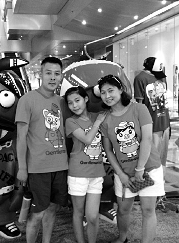一家三口的幸福合影。