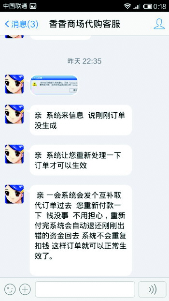香香商场代购客服聊天记录。