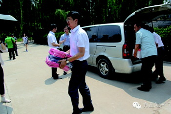 6月13日的清晨,当阳光照耀着淄博大地时,位于重庆路与中润大道交汇处的方正·凤凰国际会所内呈现出一派风风火火的热情景象,工作人员正在忙着清点早已准备好的书包、笔记本等学习用具,将其装载上车,准备踏上他们的爱心捐助之旅。