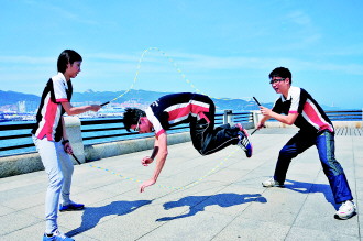 24日中午,来自香港花式跳绳会的3名工作人员受邀前来参加华运会高尔夫赛前交流活动。香港花式跳绳会作为华人运动的组成部分,曾多次参加国内外赛事活动的演出和交流。当天下午,3名工作人员在幸福公园表演花样跳绳。