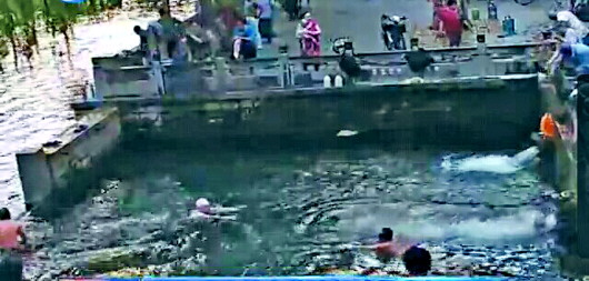 29日晨5点50分左右,几名正在黑虎泉泉池中游泳的不文明市民被高清摄像头拍了下来。 视频截图