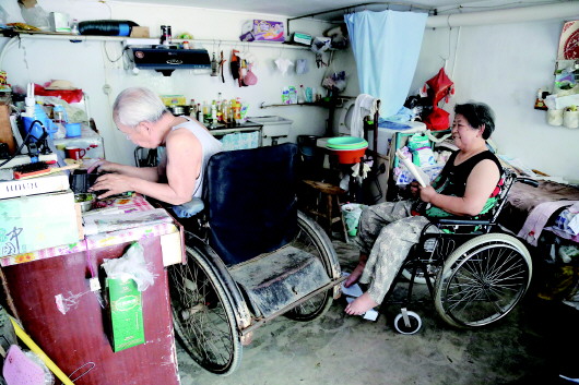 一个简易车库,不到20平米的空间内,两张单人床、一台电视、冰箱和空调。一个细声慢读,一个艰难地在电脑键盘上敲字,气氛温馨。这样的情景已经持续了近10年。