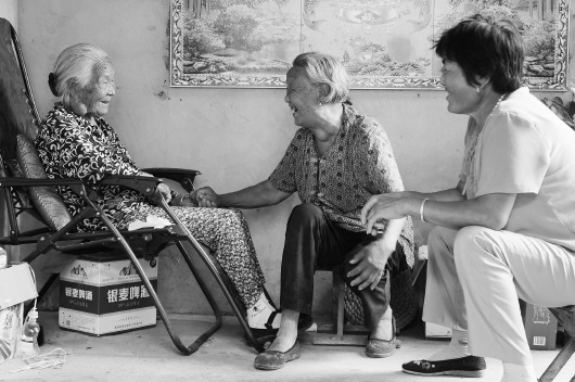 ◤老人好热闹,经常有小她几十岁的老人来找她聊天。